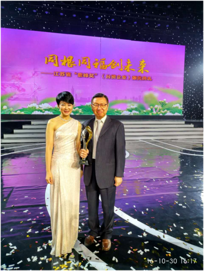 經(jīng)國務院批準,江蘇省政府專門設立目前大陸各省市中首個面向臺資企業(yè)的表彰獎項"紫峰獎"。該獎根據(jù)江蘇臺資企業(yè)特點,聘請了專門機構制定科學有效的評價體系,設立了五大類別獎項,對扎根江蘇、表現(xiàn)突出的臺資企業(yè)進行了表彰,繼續(xù)支持臺資企業(yè)轉(zhuǎn)型升級、做大做強,進一步擴大深化蘇臺各領域交流合作,努力讓合作成果惠及兩地人民。可成科技等10家企業(yè)榮獲"納稅貢獻領軍企業(yè)"獎,仁寶電腦集團等10家企業(yè)榮獲"出口貿(mào)易領軍企業(yè)"獎,大陸首家臺資法人銀行永豐銀行(中國)有限公司等4家企業(yè)榮獲"現(xiàn)代服務業(yè)領軍企業(yè)"獎,以海門慧聚藥業(yè)有限公司領銜的30家企業(yè)榮獲"成長型企業(yè)"獎,昆山超綠光電有限公司等10家企業(yè)榮獲"青年創(chuàng)業(yè)企業(yè)"獎。