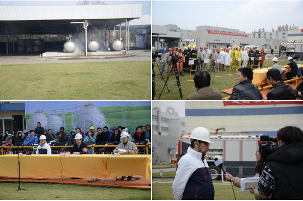 本次演練假定公司危險(xiǎn)化學(xué)品儲(chǔ)罐區(qū)四氫呋喃儲(chǔ)罐焊縫處發(fā)生泄漏,導(dǎo)致巡查人眼中毒受傷,隨著有毒氣體持續(xù)泄漏和擴(kuò)散,對(duì)廠區(qū)和周邊環(huán)境造成了嚴(yán)重影響。后因搶修中摩擦起火,對(duì)罐區(qū)存在著安全隱患和爆炸危險(xiǎn),情況十分危急。針對(duì)這一突發(fā)性時(shí)間,環(huán)保、消防、衛(wèi)生應(yīng)急慧聚藥業(yè)等應(yīng)急人員協(xié)同作戰(zhàn),開展了泄漏突發(fā)事件的應(yīng)急處置與救援。